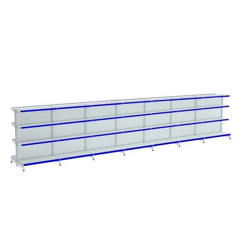 KIT GÔNDOLA CENTRO 137 FIT AMAPÁ 40/30 BRANCO PARA VÃO DE ATÉ 6,70 METROS 56 BANDEJAS PORTA ETIQUETA AZUL