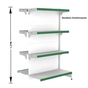 GÔNDOLA CENTRO 137 FIT AMAPÁ CONTINUAÇÃO 40/30 BRANCO 8 BANDEJAS PORTA ETIQUETA VERDE