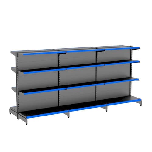 A Gôndola Premium Flex 40 Centro é ideal para farmácia, supermercados, mercearias, lojas de utilidades, materiais de construção, agropecuárias e outros. Devido sua altura permite uma visão ampla central do comércio.