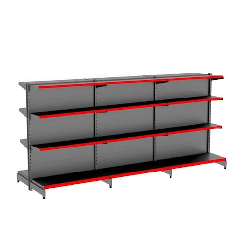 A Gôndola Premium Flex 40 Centro é ideal para farmácia, supermercados, mercearias, lojas de utilidades, materiais de construção, agropecuárias e outros. Devido sua altura permite uma visão ampla central do comércio.