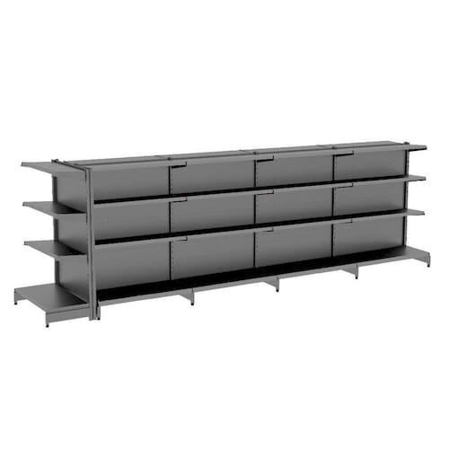 A Gôndola Premium Flex 40 Centro é ideal para farmácia, supermercados, mercearias, lojas de utilidades, materiais de construção, agropecuárias e outros. Devido sua altura permite uma visão ampla central do comércio.