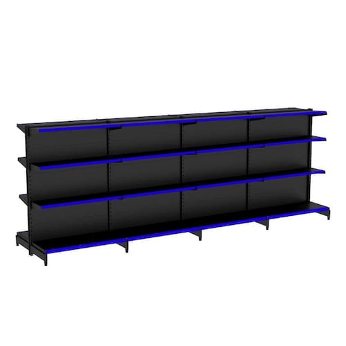 KIT GONDOLA CENTRO 142 AMAPÁ FLEX KIT 4 METROS 40/30 PRETO PORTA ETIQUETA AZUL