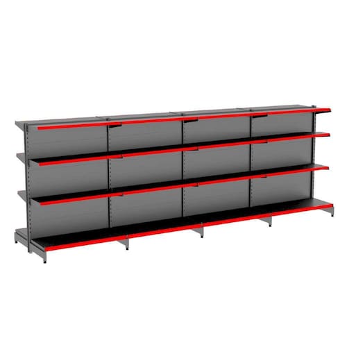 A Gôndola Premium Flex 40 Centro é ideal para farmácia, supermercados, mercearias, lojas de utilidades, materiais de construção, agropecuárias e outros. Devido sua altura permite uma visão ampla central do comércio.