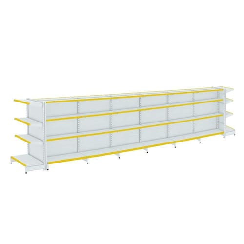A Gôndola Premium Flex 40 Centro é ideal para farmácia, supermercados, mercearias, lojas de utilidades, materiais de construção, agropecuárias e outros. Devido sua altura permite uma visão ampla central do comércio.