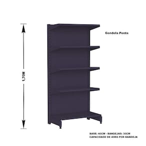 Prática e fácil de montar, com sistema de encaixe sem utilização de parafusos, possui bandejas reguláveis a cada 4,5 cm, pés com regulagem de altura, colunas dupladas e tratamento especial da superfície.