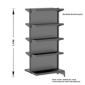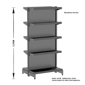 Prática e fácil de montar, com sistema de encaixe sem utilização de parafusos, possui bandejas reguláveis a cada 4,5 cm, pés com regulagem de altura, colunas dupladas e tratamento especial da superfície.