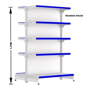KIT GÔNDOLA CENTRO 170 FIT AMAPÁ 40/30 BRANCO PARA VÃO DE ATÉ 2,40 METROS COM UMA PONTA 25 BANDEJAS PORTA ETIQUETA AZUL