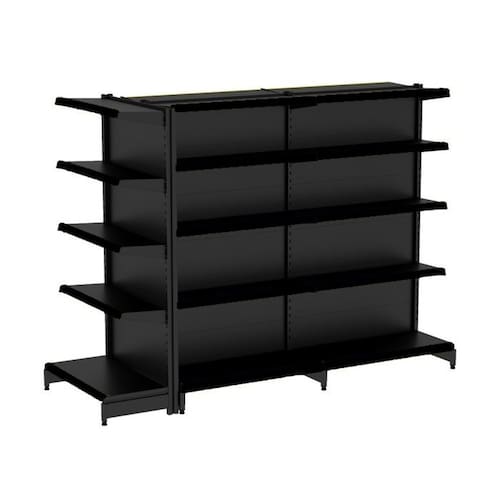 KIT GÔNDOLA CENTRO 170 FIT AMAPÁ 40/30 PRETO PARA VÃO DE ATÉ 2,40 METROS COM UMA PONTA 25 BANDEJAS PORTA ETIQUETA PRETO