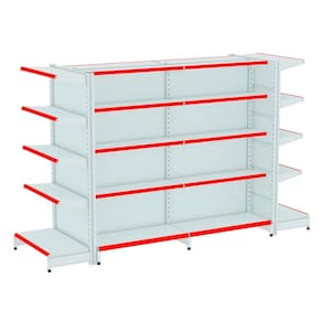 KIT GÔNDOLA CENTRO 170 FIT AMAPÁ 40/30 BRANCO PARA VÃO DE ATÉ 2,80 METROS COM DUAS PONTAS 30 BANDEJAS PORTA ETIQUETA VERMELHO