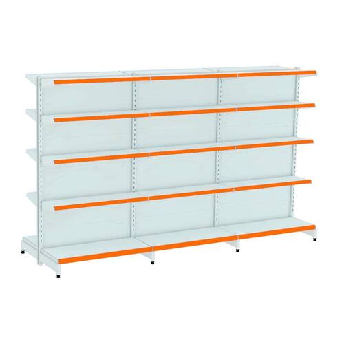 KIT GÔNDOLA CENTRO 170 FIT AMAPÁ 40/30 BRANCO PARA VÃO DE ATÉ 3 METROS 30 BANDEJAS PORTA ETIQUETA LARANJA