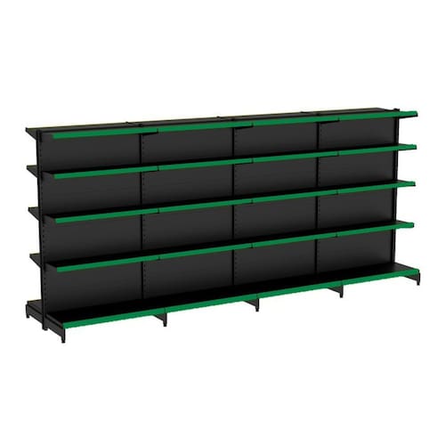 KIT GÔNDOLA CENTRO 170 FIT AMAPÁ 40/30 PRETO PARA VÃO DE ATÉ 3,9 METROS 40 BANDEJAS PORTA ETIQUETA VERDE