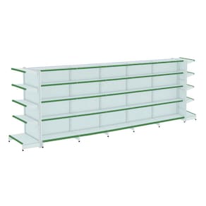 KIT GÔNDOLA CENTRO 170 FIT AMAPÁ 40/30 BRANCO PARA VÃO DE ATÉ 5,70 METROS COM DUAS PONTAS 60 BANDEJAS PORTA ETIQUETA VERDE