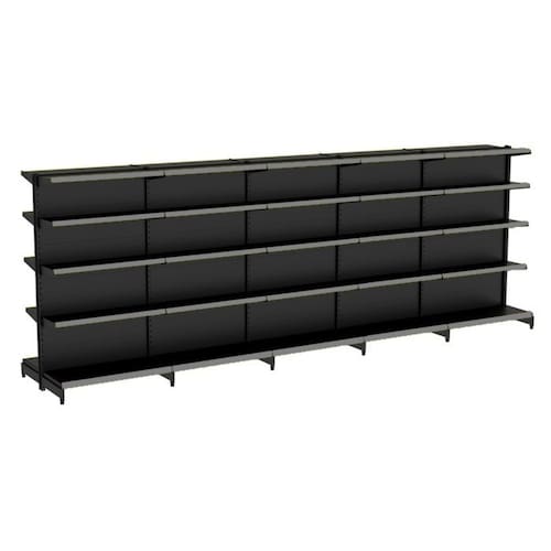 KIT GÔNDOLA CENTRO 170 FIT AMAPÁ 40/30 PRETO PARA VÃO DE ATÉ 4,9 METROS 50 BANDEJAS PORTA ETIQUETA CINZA
