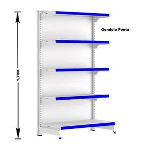 KIT GÔNDOLA CENTRO 170 FIT AMAPÁ 40/30 BRANCO PARA VÃO DE ATÉ 7,3 METROS COM UMA PONTA 75 BANDEJAS PORTA ETIQUETA AZUL
