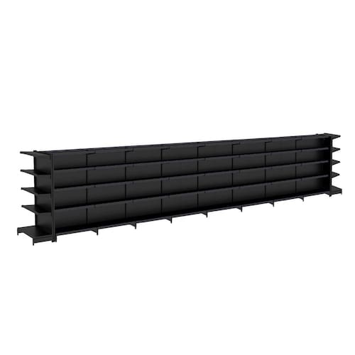 KIT GÔNDOLA CENTRO 170 FIT AMAPÁ 40/30 PRETO PARA VÃO DE ATÉ 8,5 METROS COM DUAS PONTAS 90 BANDEJAS SPE (SEM PORTA ETIQUETA)