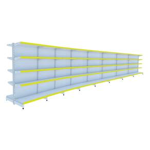 KIT GÔNDOLA CENTRO 170 FIT AMAPÁ 40/30 BRANCO PARA VÃO DE ATÉ 7,7 METROS 80 BANDEJAS PORTA ETIQUETA AMARELO