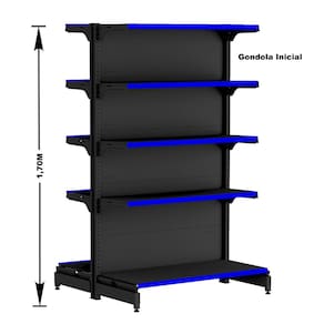 KIT GÔNDOLA CENTRO 170 FIT AMAPÁ 40/30 PRETO PARA VÃO DE ATÉ 8,7 METROS 90 BANDEJAS PORTA ETIQUETA AZUL