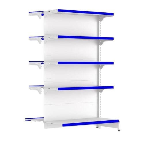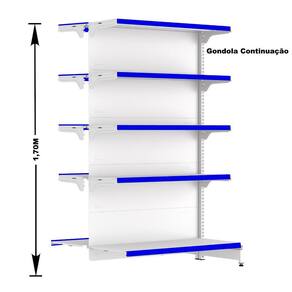 GÔNDOLA CENTRO 170 FIT AMAPÁ CONTINUAÇÃO 40/30 BRANCO 10 BANDEJAS PORTA ETIQUETA AZUL
