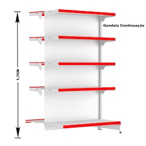 GÔNDOLA CENTRO 170 FIT AMAPÁ CONTINUAÇÃO 40/30 BRANCO 10 BANDEJAS PORTA ETIQUETA VERMELHO