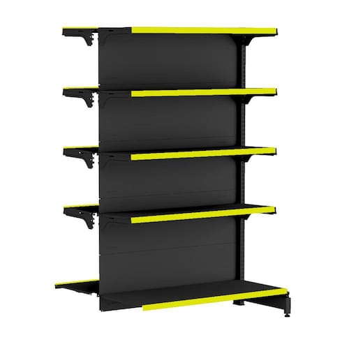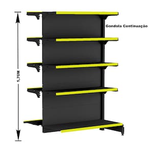 GÔNDOLA CENTRO 170 FIT AMAPÁ CONTINUAÇÃO 40/30 PRETO 10 BANDEJAS PORTA ETIQUETA AMARELO