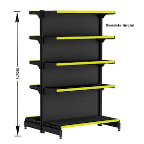 GÔNDOLA CENTRO 170 FIT AMAPÁ INICIAL 40/30 PRETO 10 BANDEJAS PORTA ETIQUETA AMARELO