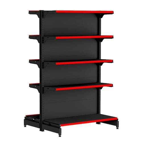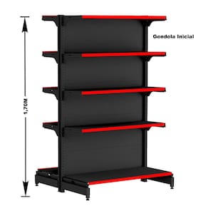 GÔNDOLA CENTRO 170 FIT AMAPÁ INICIAL 40/30 PRETO 10 BANDEJAS PORTA ETIQUETA VERMELHO