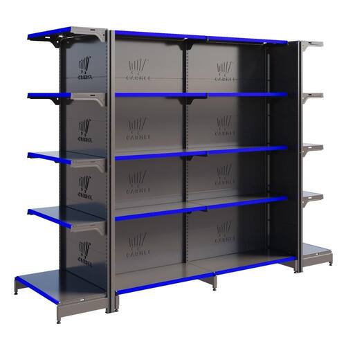 Gôndola Fit 40 Centro 2 Pontas 1 Inicial E 1 Continuação 2,02 m Amapá - Preto Perfil Azul