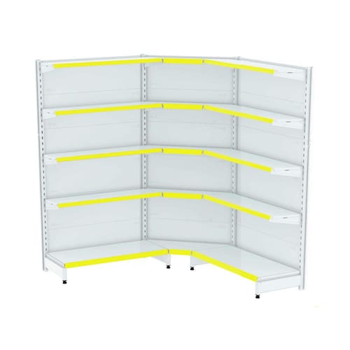 GONDOLA PAREDE 170 AMAPÁ FLEX KIT 2 METROS COM 1 CANTO 40/30 BRANCO PORTA ETIQUETA AMARELO
