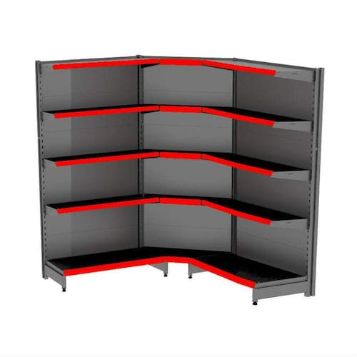 GONDOLA PAREDE 170 AMAPÁ FLEX KIT 2 METROS COM 1 CANTO 40/30 PRETO PORTA ETIQUETA VERMELHO