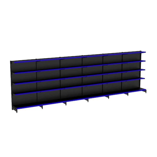 A Gôndola Premium Flex 40 Parede é ideal para supermercados, mercearias, lojas de utilidades, materiais de construção, agropecuárias e outros. Prática e fácil de montar, com sistema de encaixe sem utilização de parafusos, possui bandejas reguláveis a cada 4,5cm, pés com regulagem de altura, colunas dupladas e tratamento especial da superfície.