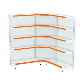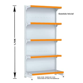 GONDOLA PAREDE 170 FIT AMAPÁ PARA VÃO DE ATÉ 2 METROS MAIS UM CANTO 40/30 BRANCO 15 BANDEJAS PORTA ETIQUETA LARANJA