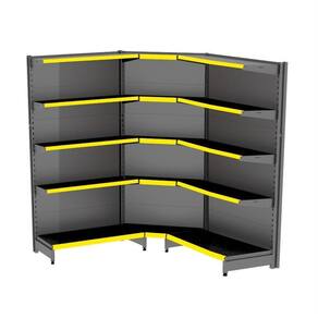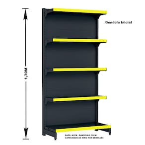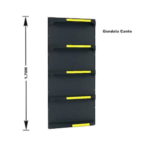 GONDOLA PAREDE 170 FIT AMAPÁ PARA VÃO DE ATÉ 2 METROS MAIS UM CANTO 40/30 PRETO 15 BANDEJAS PORTA ETIQUETA AMARELO