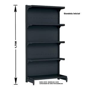 GONDOLA PAREDE 170 FIT AMAPÁ PARA VÃO DE ATÉ 2 METROS MAIS UM CANTO 40/30 PRETO 15 BANDEJAS SEM PORTA ETIQUETA