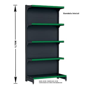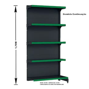 Gondola Parede 170 Fit Ate 2 Metros Preto 10 Bandeja Pe Verd