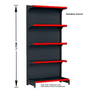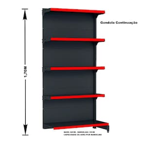 Gondola Parede 170 Fit Ate 2 Metros Preto 10 Bandeja Pe Verm