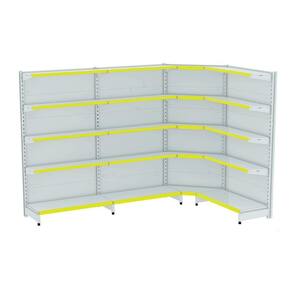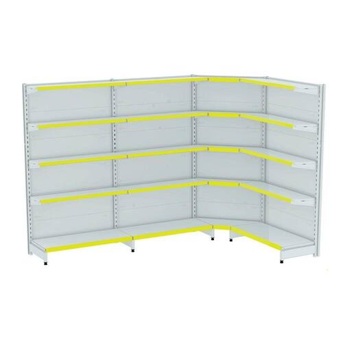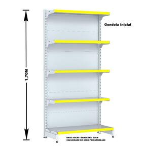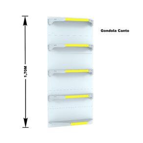 GONDOLA PAREDE 170 FIT AMAPÁ PARA VÃO DE ATÉ 3 METROS MAIS UM CANTO 40/30 BRANCO 20 BANDEJAS PORTA ETIQUETA AMARELO