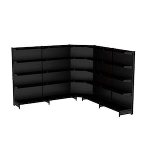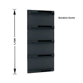 GONDOLA PAREDE 170 FIT AMAPÁ PARA VÃO DE ATÉ 4 METROS MAIS UM CANTO 40/30 PRETO 25 BANDEJAS PORTA ETIQUETA PRETO