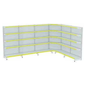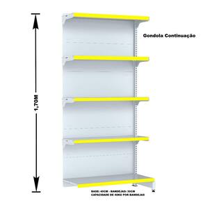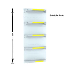 GONDOLA PAREDE 170 FIT AMAPÁ PARA VÃO DE ATÉ 5 METROS MAIS UM CANTO 40/30 BRANCO 30 BANDEJAS PORTA ETIQUETA AMARELO