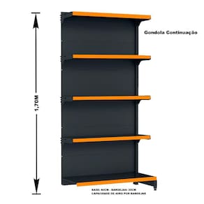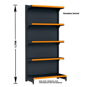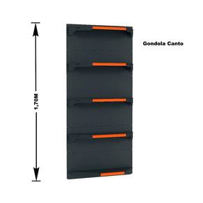 GONDOLA PAREDE 170 FIT AMAPÁ PARA VÃO DE ATÉ 5 METROS MAIS UM CANTO 40/30 PRETO 30 BANDEJAS PORTA ETIQUETA LARANJA