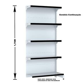 GÔNDOLA PAREDE 170 CONTINUAÇÃO FIT AMAPÁ 40/30 COR BRANCO 5 BANDEJAS PORTA ETIQUETA PRETO