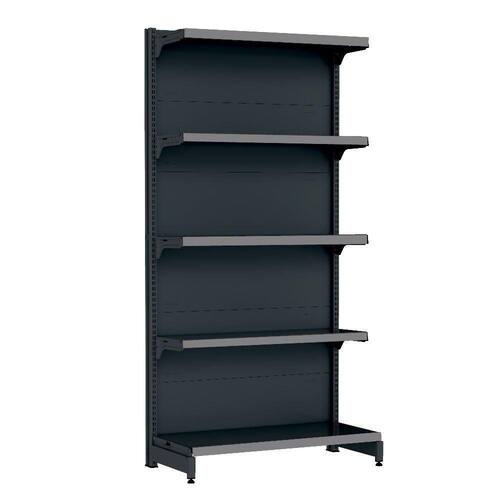 GÔNDOLA PAREDE 170 INICIAL FIT AMAPÁ 40/30 COR PRETO 5 BANDEJAS PORTA ETIQUETA CINZA