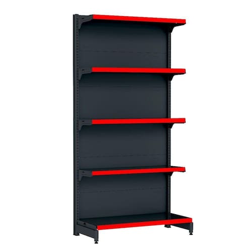 GÔNDOLA PAREDE 170 INICIAL FIT AMAPÁ 40/30 COR PRETO 5 BANDEJAS PORTA ETIQUETA VERMELHO
