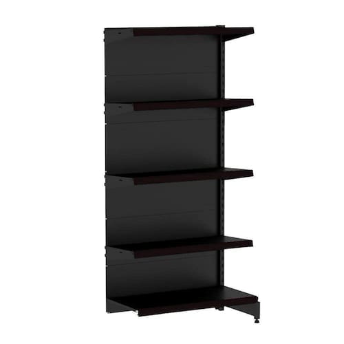 GÔNDOLA PAREDE 196 CONTINUAÇÃO AMAPÁ LINHA PREMIUM FLEX 60 EXTRA FORTE 5 BANDEJAS 1X 40 CM 4X 35 CM COR PRETO SPE (SEM PORTA ETIQUETA)