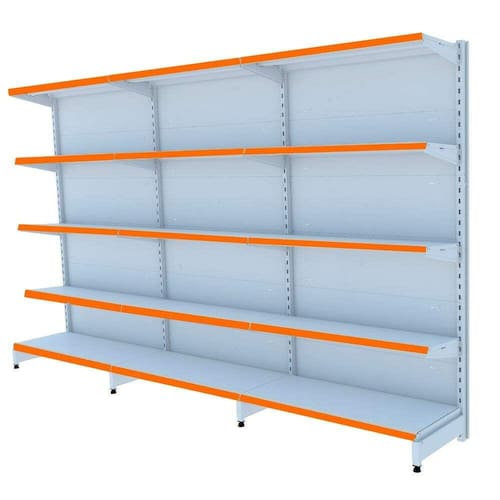 GONDOLA PAREDE 196 AMAPÁ FLEX 60 EXTRA-FORTE KIT 3 METROS 5 BANDEJAS 1X40 CM +4X 35 CM BRANCO PORTA ETIQUETA (FAIXA) LARANJA