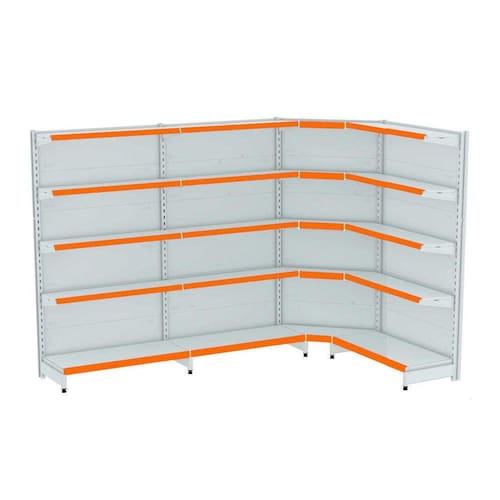 GONDOLA PAREDE 196 AMAPÁ FLEX 60 EXTRA-FORTE KIT 3 METROS COM 1 CANTO 5 BANDEJAS 1X40 CM +4X 35 CM BRANCO PORTA ETIQUETA (FAIXA) LARANJA