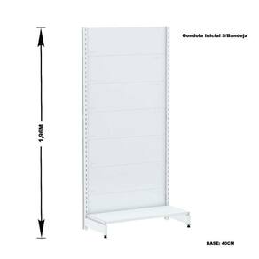 Esta gondola segue com uma bandeja de 40 cm na base e não tem as demais bandejas, recomendado para instalar régua gancheira onde você adiciona ganchos e encartelados.