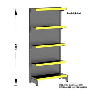 GONDOLA PAREDE 196 AMAPÁ FLEX KIT 2 METROS 40/30 PRETO PORTA ETIQUETA AMARELO