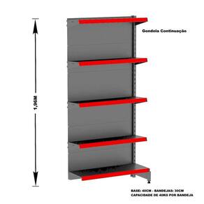 A Gôndola Premium Flex 40 Parede é ideal para supermercados, mercearias, lojas de utilidades, materiais de construção, agropecuárias e outros. Prática e fácil de montar, com sistema de encaixe sem utilização de parafusos, possui bandejas reguláveis a cada 4,5cm, pés com regulagem de altura, colunas dupladas e tratamento especial da superfície.
