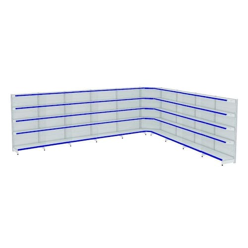 GONDOLA PAREDE 202 AMAPÁ FIT KIT 9 METROS COM 1 CANTO 40/30 BRANCO PORTA ETIQUETA AZUL