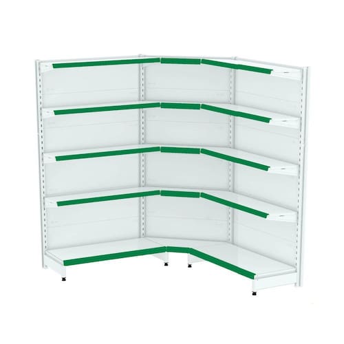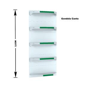 GONDOLA PAREDE 202 FIT AMAPÁ PARA VÃO DE ATÉ 2 METROS MAIS UM CANTO 40/30 BRANCO 15 BANDEJAS PORTA ETIQUETA VERDE